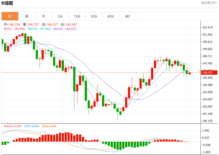今日周五,截止目前美元兑日元报146.560,上涨0.09%。