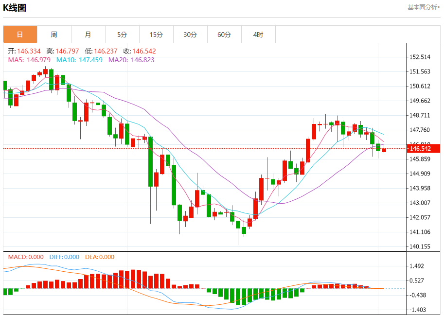 周五纽盘,美元兑日元交投于146.565,涨幅为0.10%。
