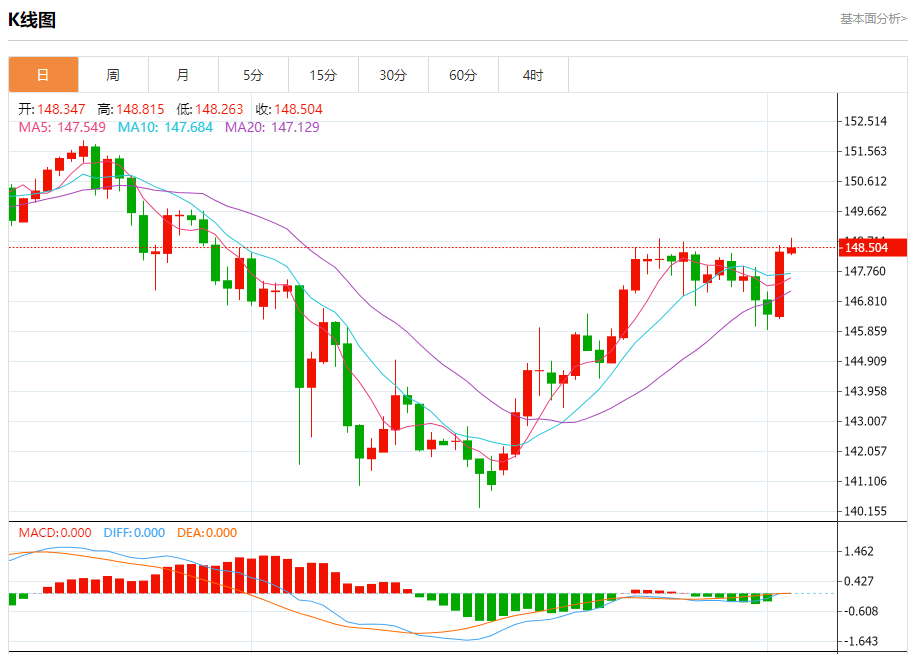 周一纽盘,美元兑日元交投于148.517,涨幅为0.09%。