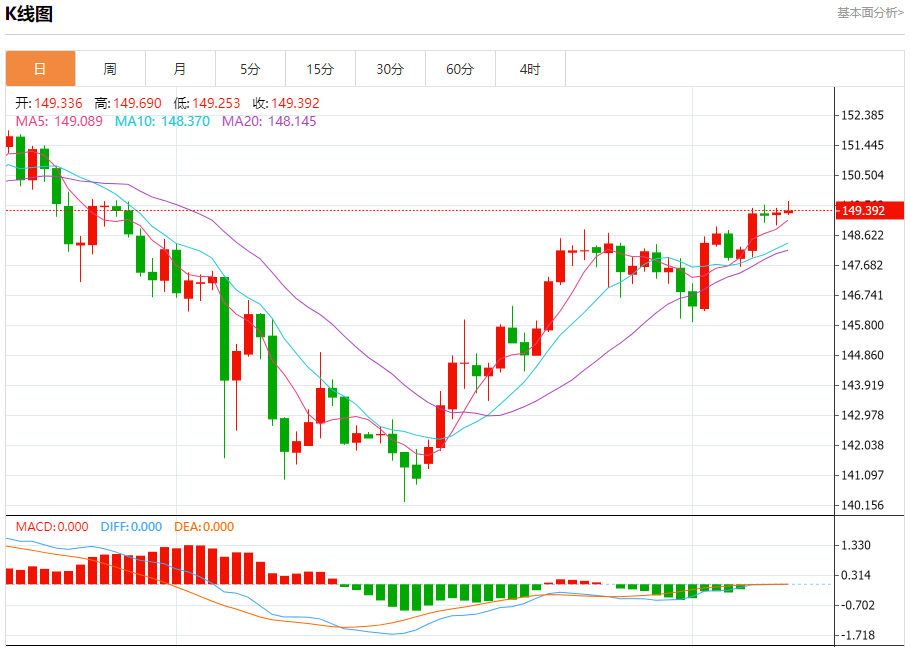 周二纽盘,美元兑日元交投于149.391,涨幅为0.03%。