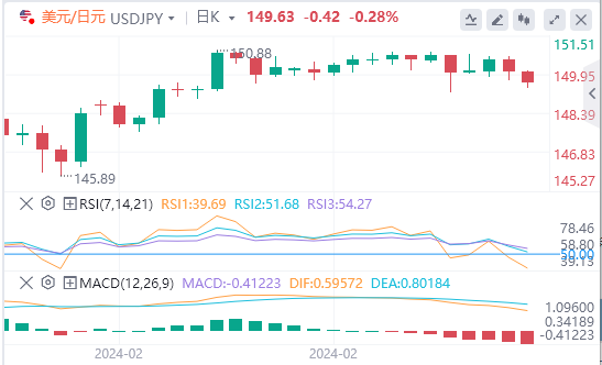 今天的预期交易区间在149.20支撑位和150.80阻力位之间