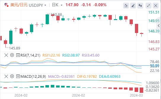 今天的预期交易区间在147.00支撑位和148.60阻力位之间。