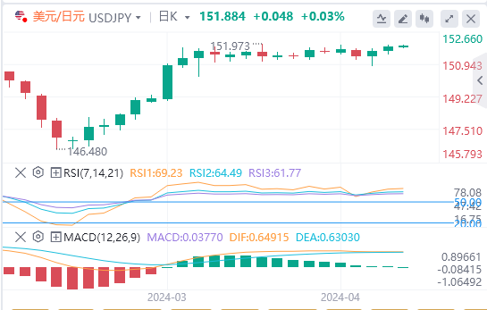 ÃÀÔª/ÈÕÔªÈÔ±£³ÖÔÚ50ÈÕºÍ200ÈÕ¾ùÏßÉÏ·½£¬È·ÈÏÁË¿´Õǵļ۸ñÐźš£ÃÀÔª/ÈÕÔªÖØ»Ø4ÔÂ3Èոߵã151.951£¬¿ÉÄÜ»áÖ§³ÅÍ»ÆÆ152¹Ø¿Ú¡£