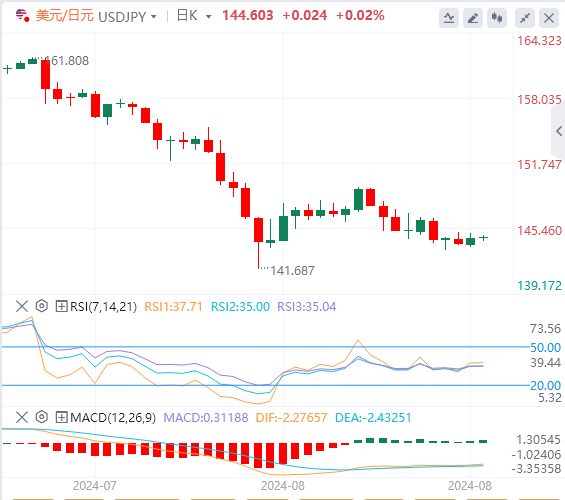 今天的预期交易区间在143.60支撑位和145.20阻力位之间