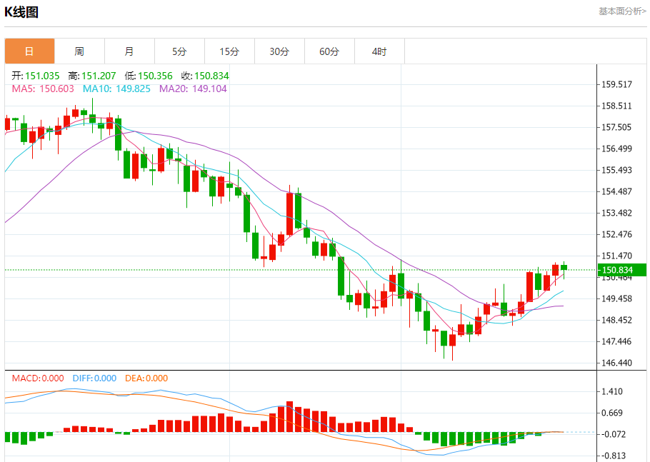 今日周五,截止目前美元兑日元报150.833,下跌0.14%。