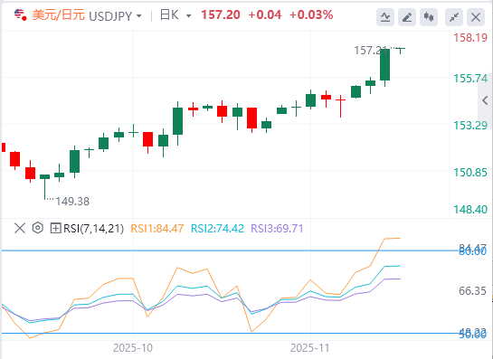 政府提出约25万亿日元的补充预算,用于首相高市早苗的刺激计划,远超去年的13.9万亿日元额外预算。这反过来加剧了对新政府债务供应的担忧,并使日本的借贷成本达到数十年来的最高水平。此外,本周早些时候发布的数据显示,日本经济在第三季度出现六个季度以来的首次收缩,这可能对日本央行(BoJ)施加更大压力,促使其推迟加息并限制日元升值。