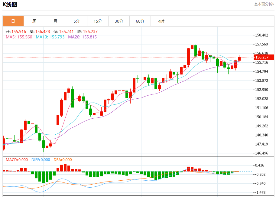 今日周二,截止目前美元兑日元报156.242,上涨0.20%。