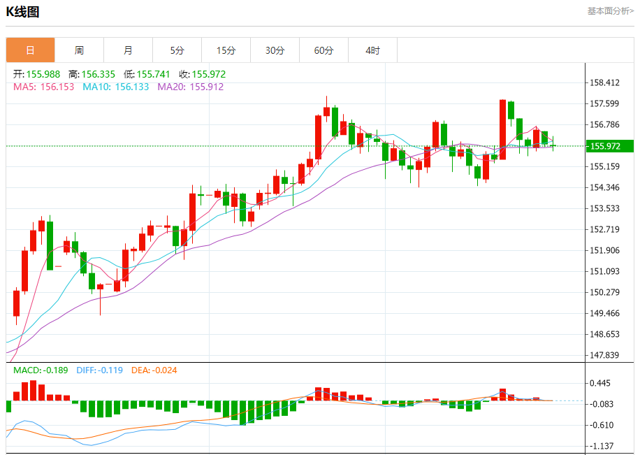 周二纽盘,美元兑日元交投于155.982,跌幅为0.04%。