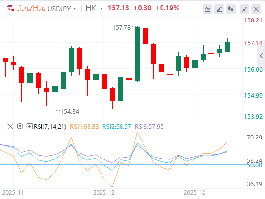 然而,投资者似乎对紧缩速度感到不满,且在押注能源补贴、稳定的稻米价格和低廉石油成本将使通胀保持低迷进入2026年的情况下,仍对紧缩速度感到不确定。这连续第四天压低日元,加上美元整体走强,周一将美元兑日元推高至157.00关口。