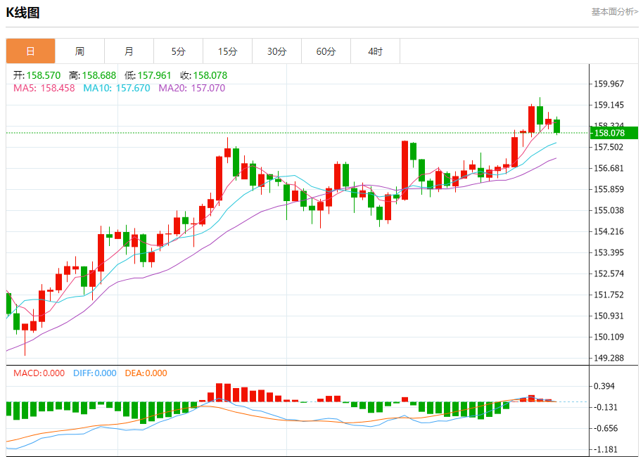 周五纽盘,美元兑日元交投于158.094,跌幅为0.33%。
