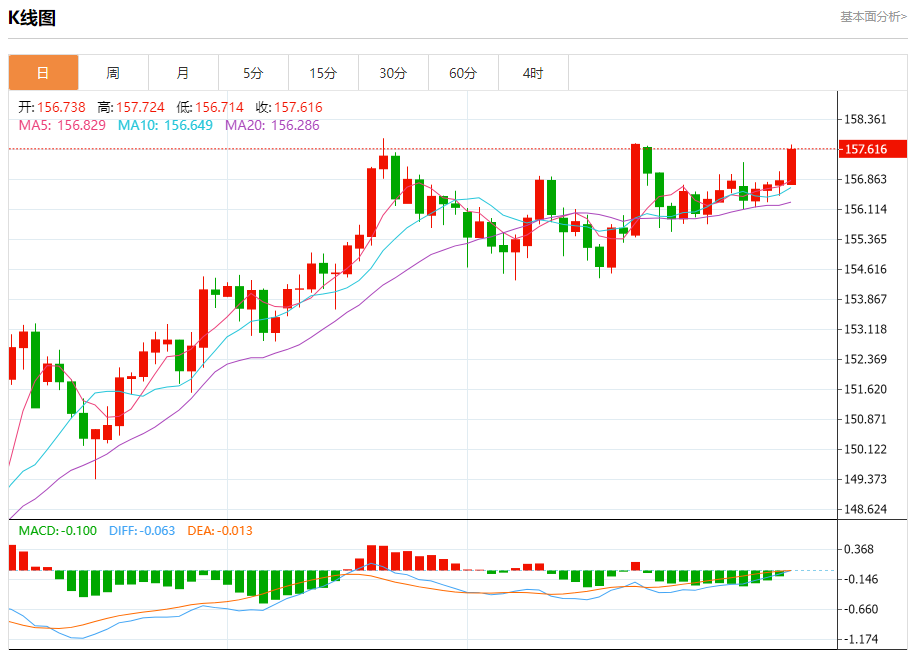 今日周五,截止目前美元兑日元报157.608,上涨0.48%。 日元基本面行情分析 知情人士称,尽管日本央行预计将保持基准利率不变,但预计将在本月会议上上调经济增长预期。日本央行可能会在1月23日发布的季度经济展望报告中,将4月开始的2026财年经济增长预期从0.7%上调,当前财年的经济预期也可能会被上调。