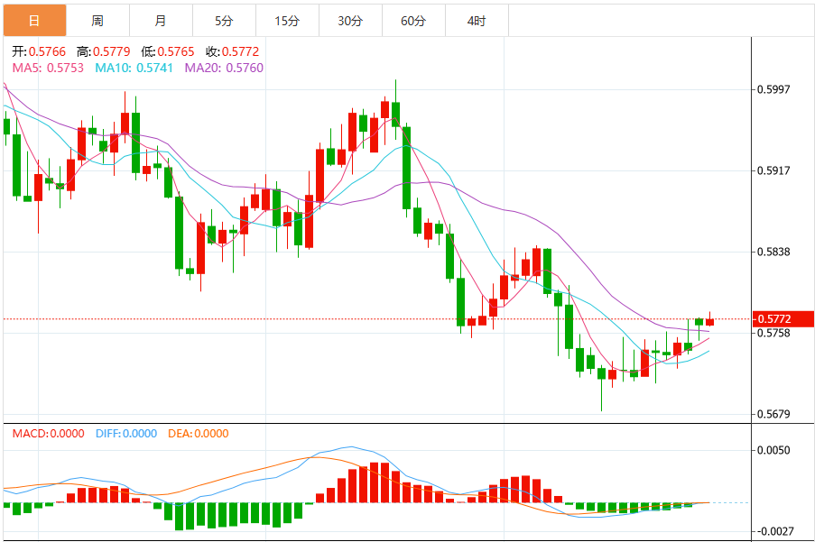 技术上,尽管纽元/美元回升了一些并攀升至20日简单移动均线(SMA)0.5762之上,但整体仍呈下行偏向。 相对强弱指数(RSI)看跌,确认下行趋势可能会恢复。 在短期内。