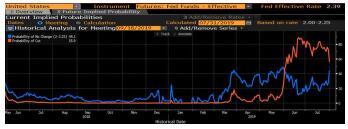 鲍威尔在美联储声明发布后举行的记者会上表示,此次降息是“一次周期内的政策调整”。交易商的解读是,这意味着美联储并不准备实施一系列的降息。鲍威尔的言论引发利率期货急剧下跌,而美国两年期公债收益率则升至两个月高点。