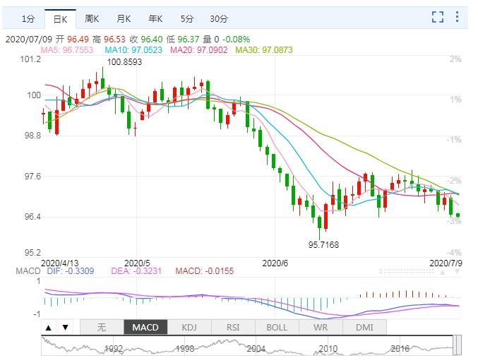 美元指数收盘下跌0.49%,报96.49,盘中最低触及96.40,最高触及97.06。