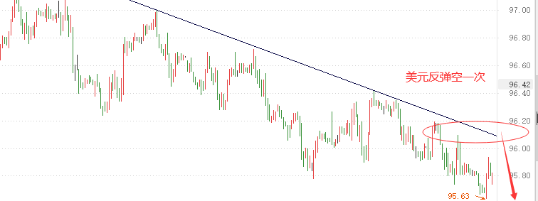 操作:96.15之下单边下跌,日内可关注反弹96.1附近的试空机会,目标95.70-95.50
