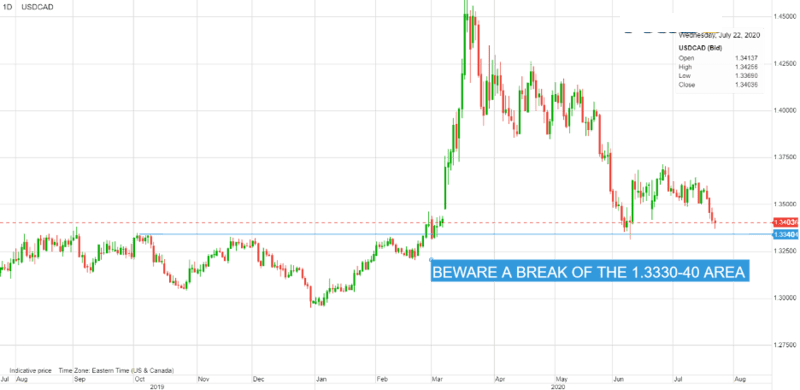 美元/加元:美元/加元走势的主要驱动因素是美元,而不是加拿大国内数据或当前的货币政策。由于人们对美国巨额预算赤字和病例不断增加的担忧,美元正遭受打击。广泛的美元抛售助长了美元/加元的下跌,而自6月初以来黄金价格近13%的涨幅也加剧了这一趋势,因为加拿大是世界第五大黄金生产国。