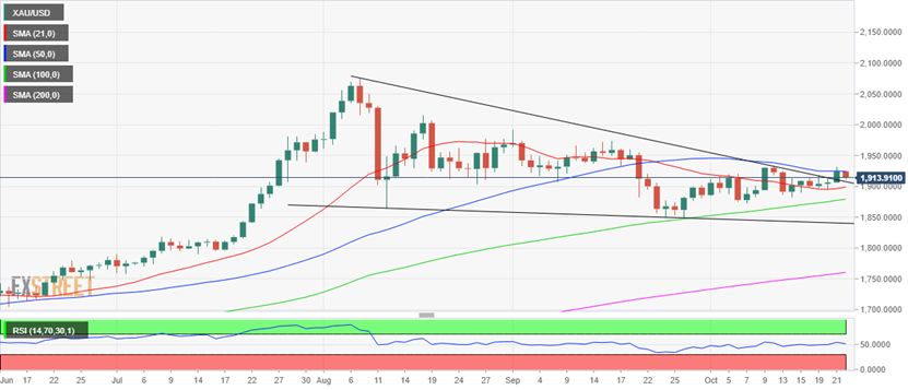 下行方面,21日均线1898美元将继续阻碍下行,跌破这一水平可能会测试100日均线1879美元。