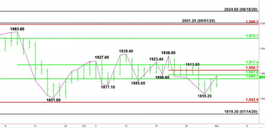 FX Empire表示,最新金价走势显示在1889.70美元至1842.60美元的支撑区间可能会崩塌。黄金在周一(2日)收于1889.70美元的高点,尽管收盘价高于1889.70美元表明有买家存在,但随后可能潜在反弹,潜在阻力位于1906.70美元和1917.40美元。