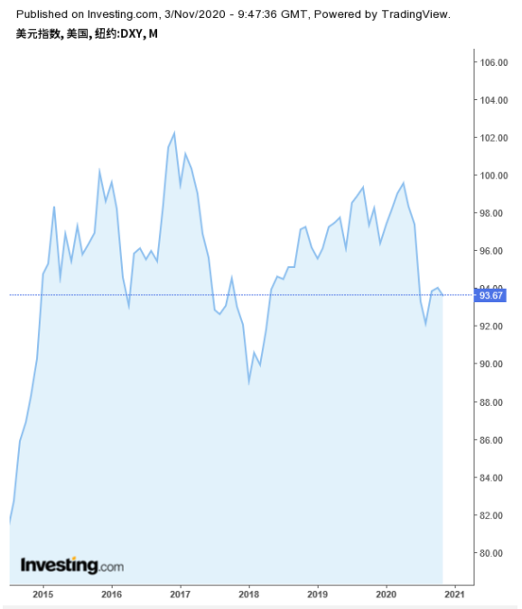 所以,我们只能说在美国负实际利率料将长期存在的大前提下,美元料将在长期内表现疲软,但不排除,在短期内,如果大选后大规模财政刺激通过,美国经济再现三季度的复苏,可能会再度吸引资金来支撑美元。还有一个未知数是,如果选举结果出现争议,持续数月的不确定性也可能会推动美元作为避险货币的需求。