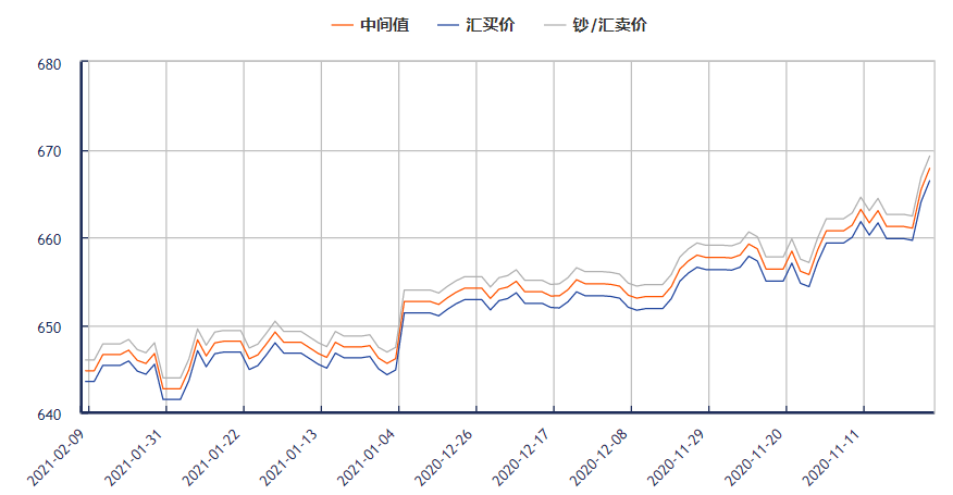 外汇网提供今日美元兑换人民币汇率最新中间价(2021年2月9日):