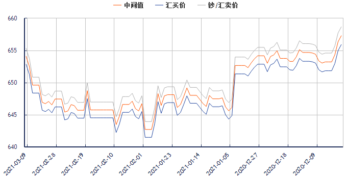 外汇网提供今日美元兑换人民币汇率最新中间价(2021年3月9日):