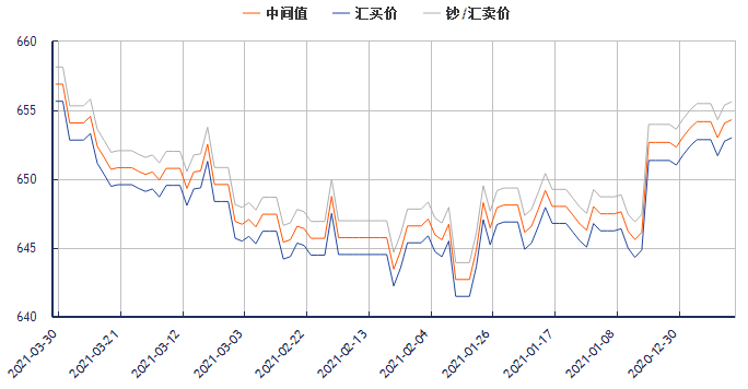 今日美元兑换人民币汇率最新中间价(2021年3月30日):