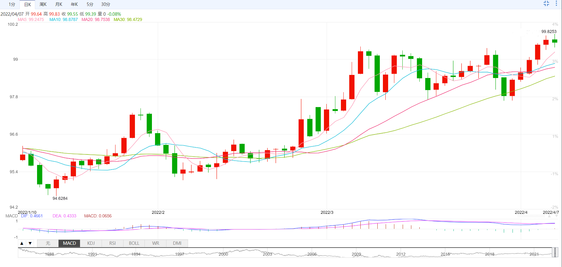 美元保持买入价,并逐渐接近心理关口100.00。到目前为止,近期美元的价格走势仍是由地缘政治,而美元走强的情况下仍然能很好地支撑当前通胀升高的叙述,一个潜在的更积极的从美联储紧缩立场,美国高收益率和美国经济的可靠的性能。