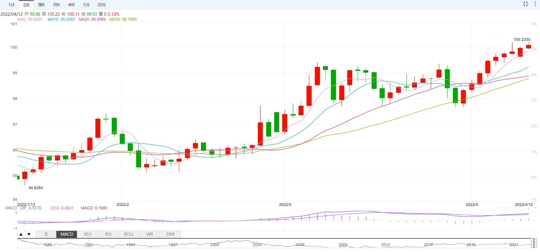 周二开盘后,该指数已连续第9个交易日上涨,在心理尺度100.00以北进一步创下周期新高,并一直受到美国国债收益率走高的支撑。