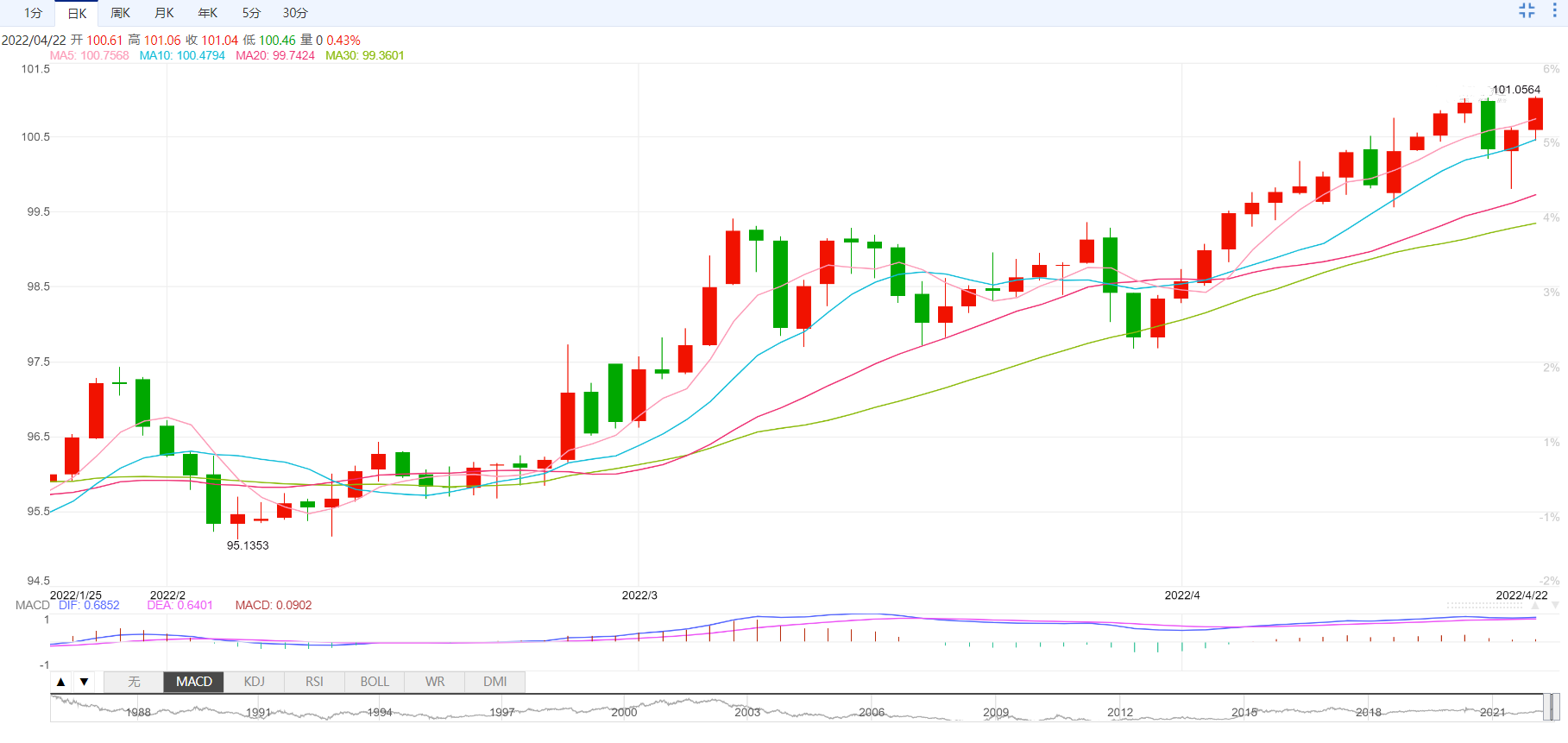 美元指数连续第二个交易日上涨,在风险综合体再度走软、美国国债收益率走高以及地缘政治紧张局势加剧的背景下,该指数已在上周末测试101.00的关口。