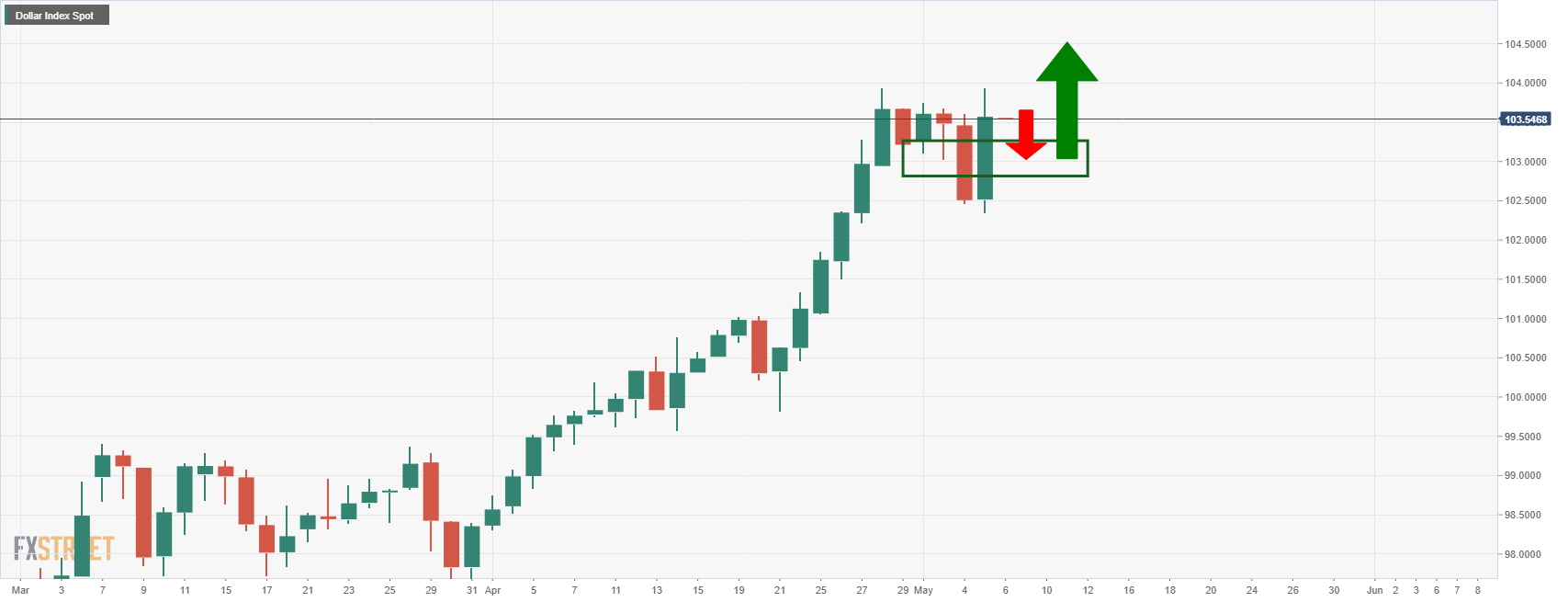 不过,多头目前仍在坚持这一路线,并已清除了以下阻力位。如果上述价格走势结束,在日线图上反向的头肩位置将是一个看涨因素。