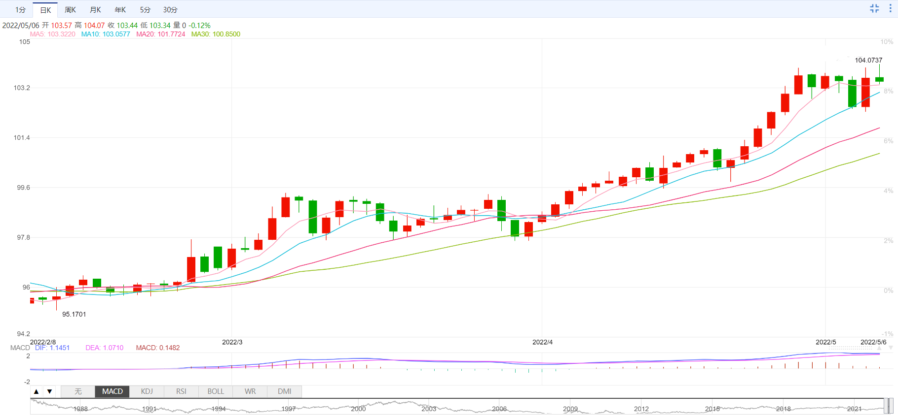 美元指数相关水平