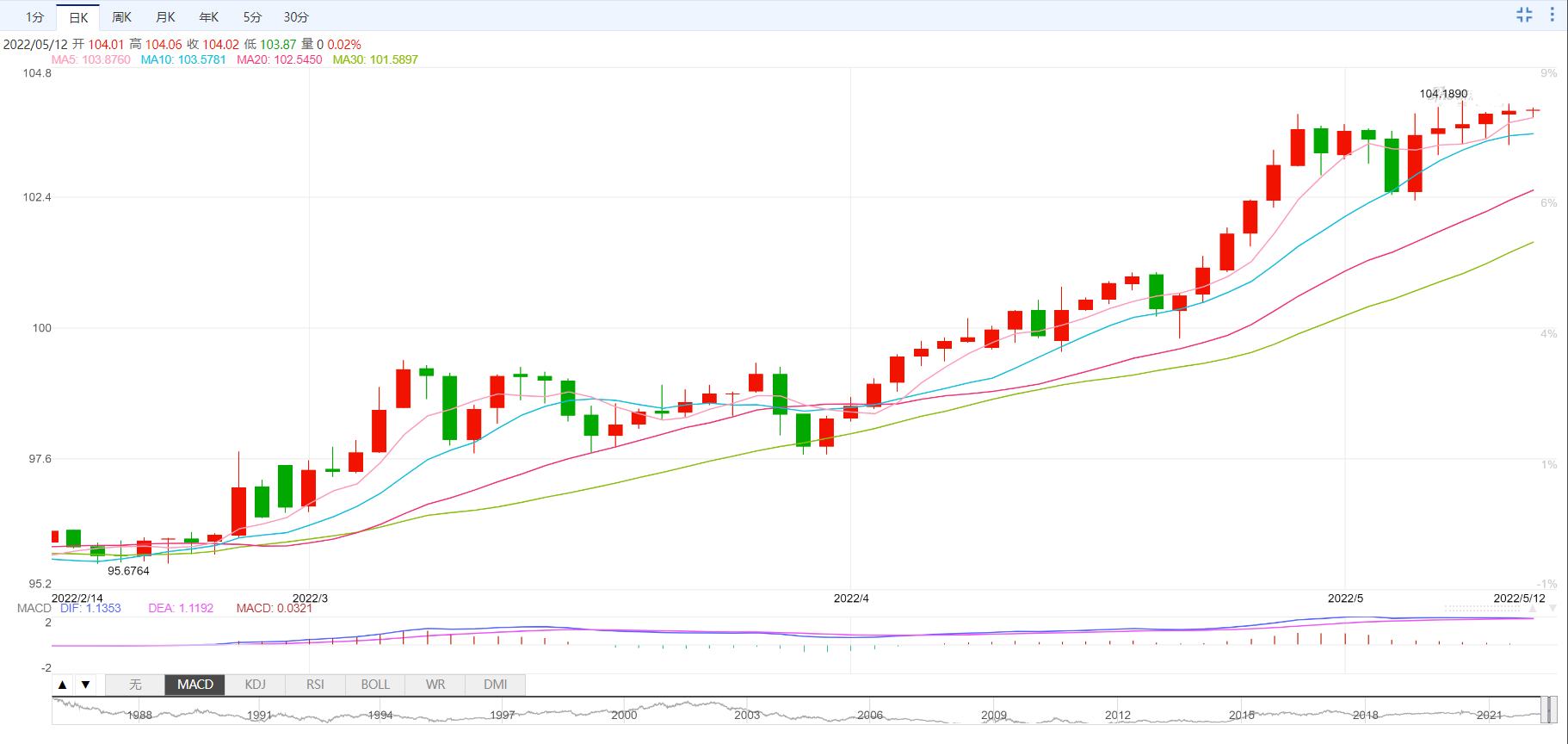 在此之后,不能排除美元会逐步上涨至2002年9月高点109.80附近的可能性。
