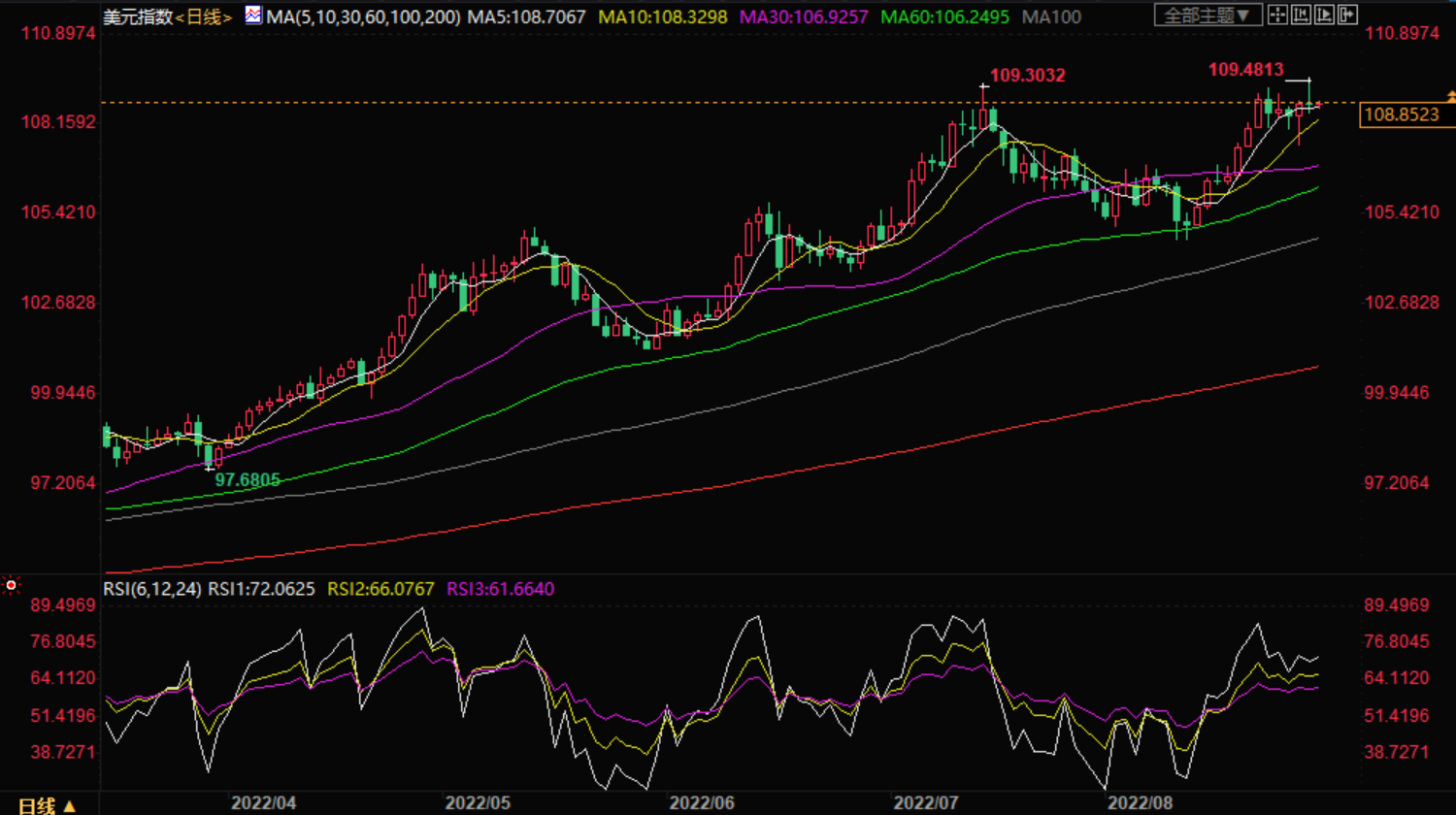 即便如此,美联储主席鲍威尔在担心经济衰退和/或就业放缓的情况下,坚定地推动加息,似乎让美元指数的买家抱有希望。市场对美联储9月份加息0.75%的预期也可能出现同样的变化,此前市场对美联储加息的鹰派预期有所减弱。根据芝加哥商业交易所美联储观察工具的最新数据,美联储在下个月的联邦公开市场委员会(FOMC)上加息75个基点的可能性为72.5%。