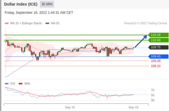 交易策略: 在 109.4300 之上,看涨,目标价位为 110.0000 ,然后为 110.1800 。
