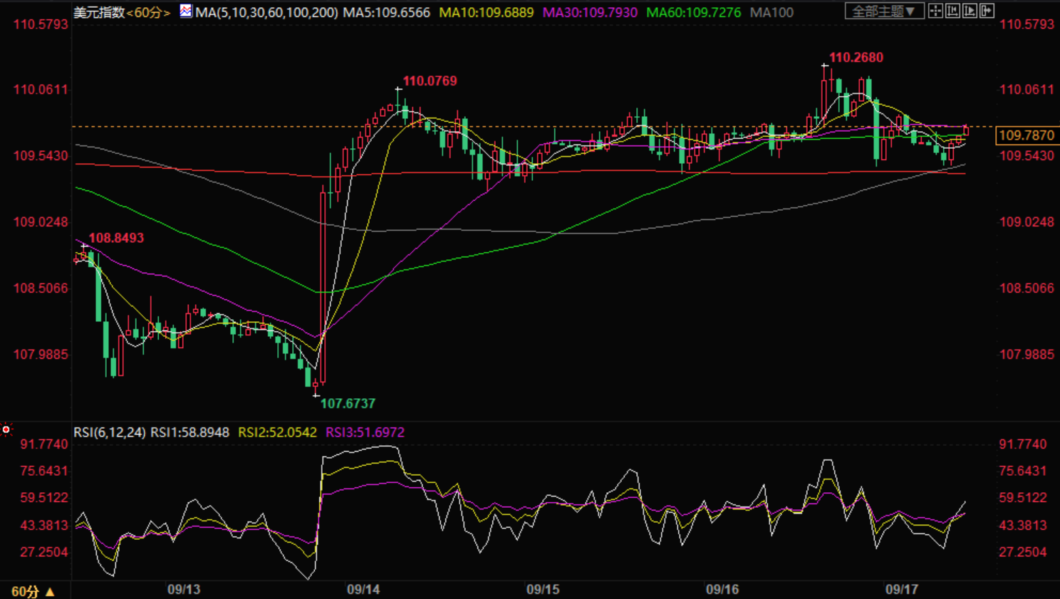 根据美元指数,美元兑一篮子货币下跌0.1%,至109.68点。本月早些时候,该指数达到了20年来的高点110.79。本周该指数上涨0.6%,今年以来累计上涨约15%。周一东京股市开盘前,该指数下跌0.13%,至109.508点。
