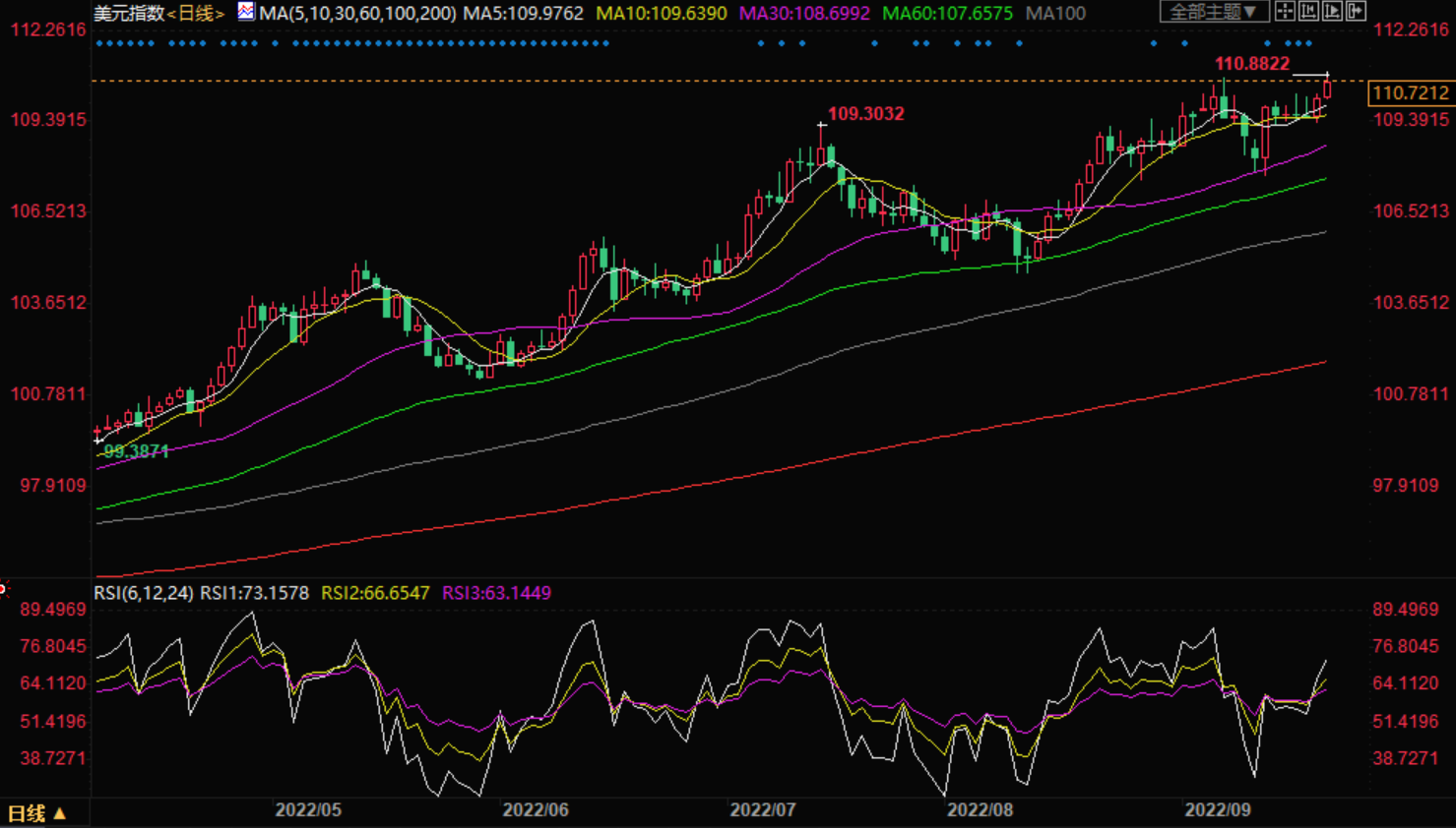 事实上,美联储周三晚些时候再次加息0.75个基点的预期更加坚定,加上鲍威尔主席发出的鹰派信息的感知和修正后的经济预测,都为美元增添了额外的力量,推动指数接近111.00的障碍。