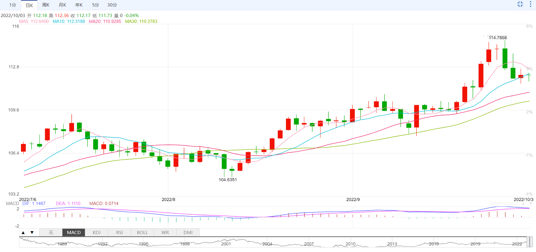 本周开盘时,该指数在112.00区域附近面临一些温和压力。
