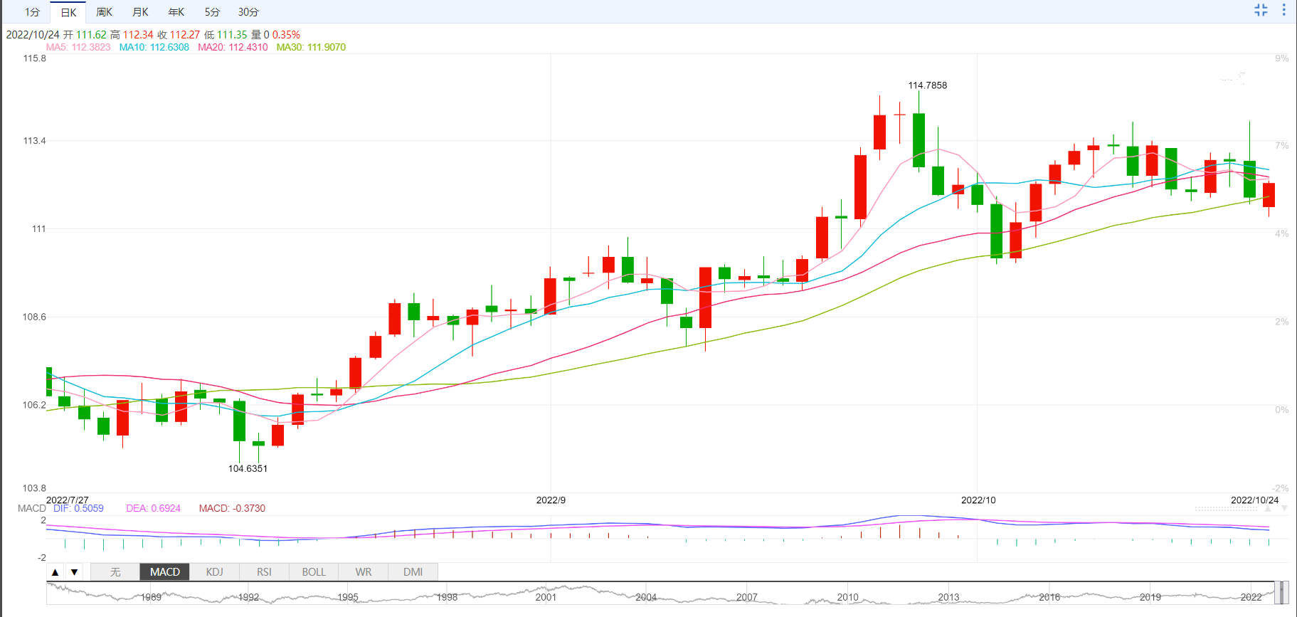 目前,美元指数在112.08点上涨了0.19%,并将在113.88(10月13日的月最高价)、114.76(2022年9月28日的最高价)和115.32(2002年5月的最高价)处面临下一个上升障碍。