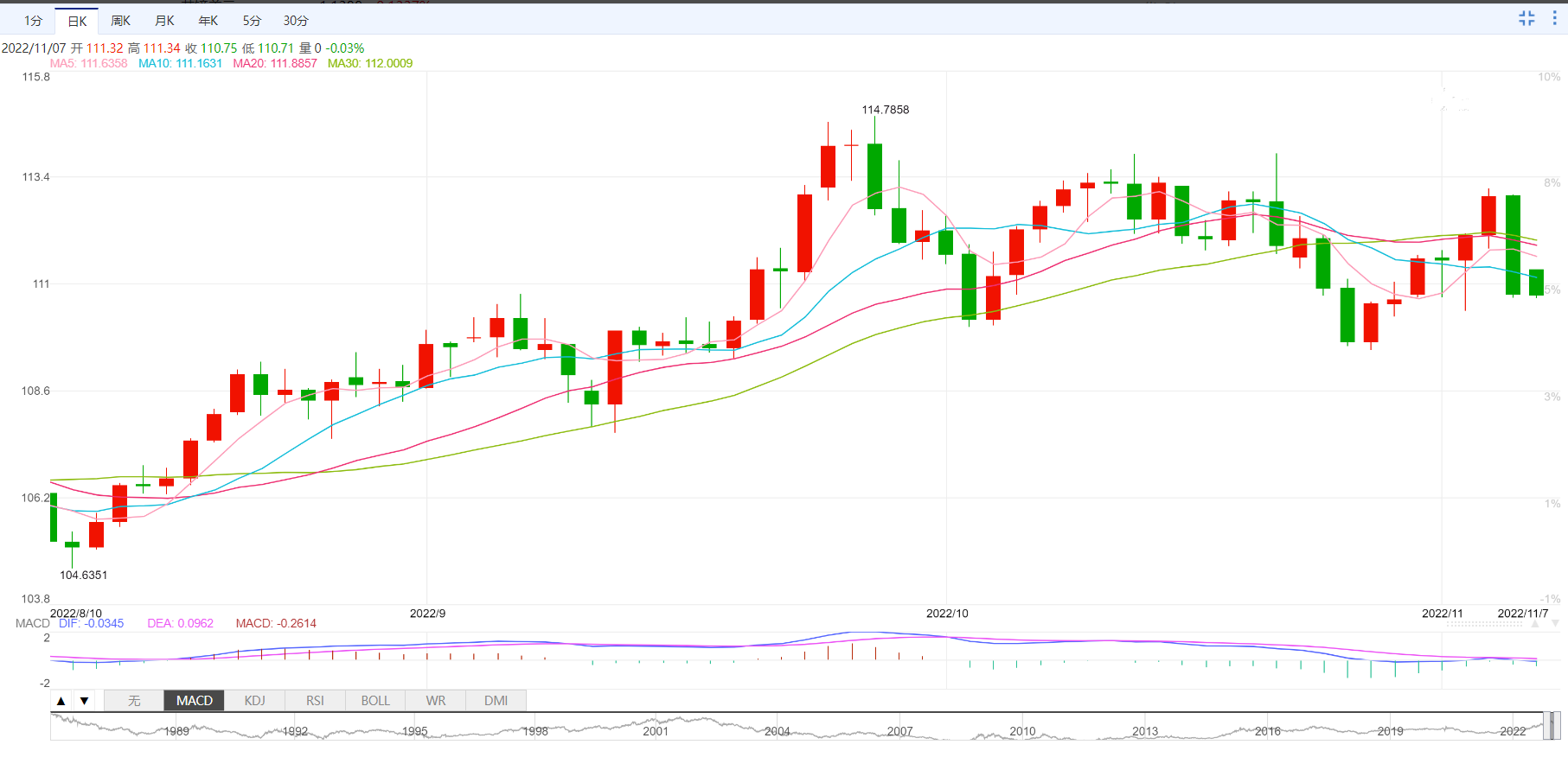 现在,美元指数在110.86处上涨了0.06%,并面临113.14(11月3日的月最高价)的初始阻力,随后是113.88(10月13日的月最高价),然后是114.76(2022年9月28日的最高价)。