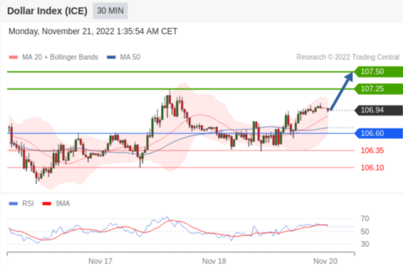 交易策略: 在 106.6000 之上,看涨,目标价位为 107.2500 ,然后为 107.5000 。