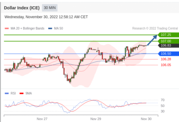 交易策略: 在 106.5000 之上,看涨,目标价位为 107.0000 ,然后为 107.2500 。