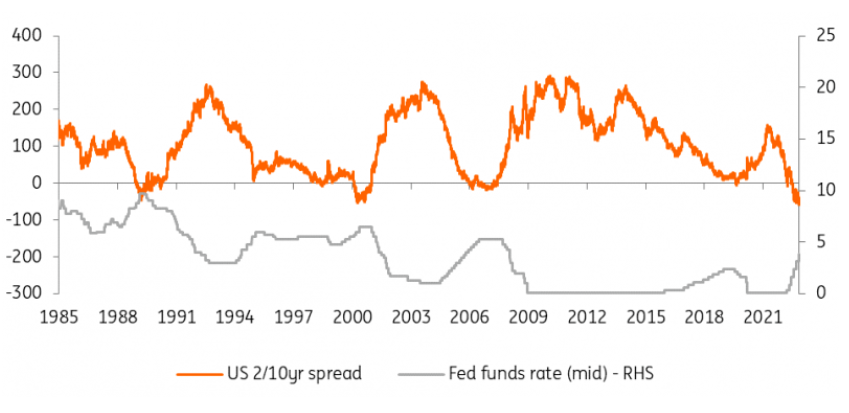 那曲线呢?主要的主题是反反转,最终是曲线变陡。目前看到的50bp反转应该首先从前端展开。当美联储达到5%的峰值时,2年期国债收益率应该从4.5%的区域移开,以便在未来几年迅速计入较低的联邦基金利率。