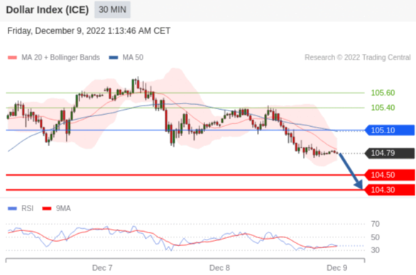 交易策略: 在 105.1000 之下,看跌,目标价位为 104.5000 ,然后为 104.3000 。