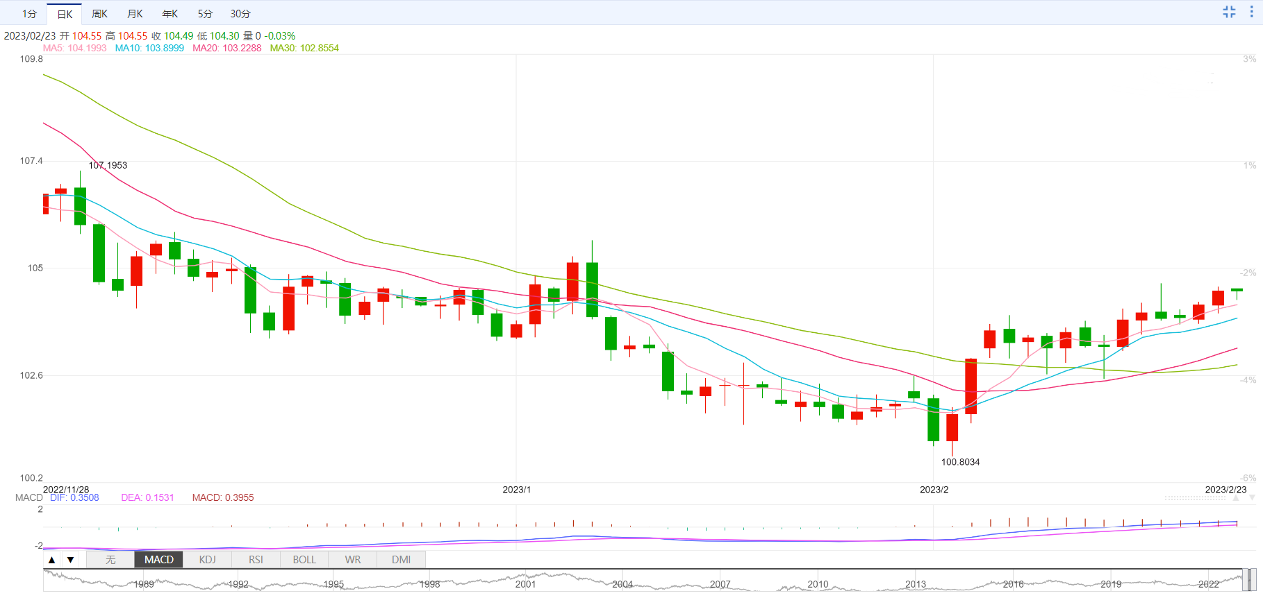 现在,美元指数在104.40点回落了0.09%,面临着下一个障碍104.66(2月27日的月高点),其次是105.63(1月6日的2023年高点),然后是106.45(200天移动均线)。