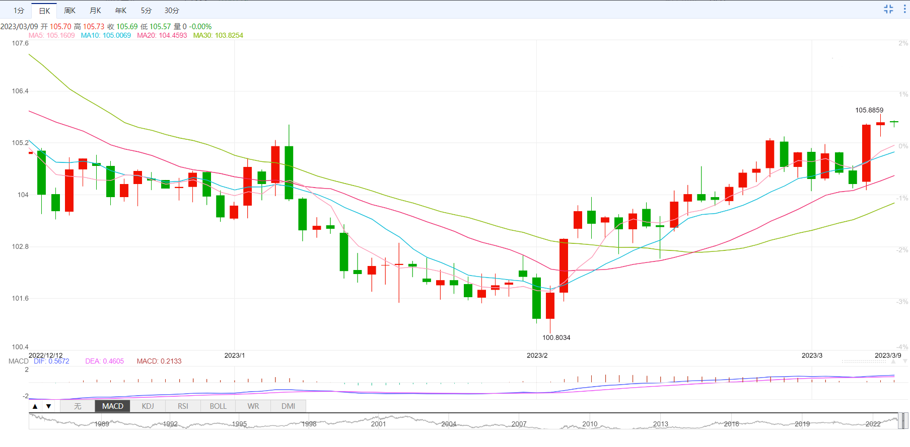 如果美元指数跌破104.30,则不排除美元跌向上月低点100.80的可能性。