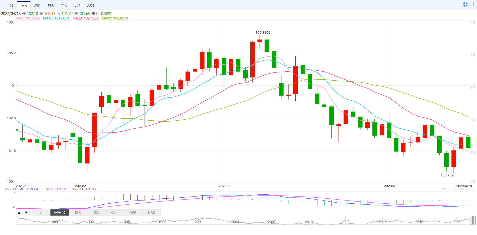 现在,美元指数回落0.11%,至101.98,突破100.78(2023年4月14日的低点)将打开通往100.00(心理水平)的大门,最终打开99.81(2022年4月21日的周低点)。