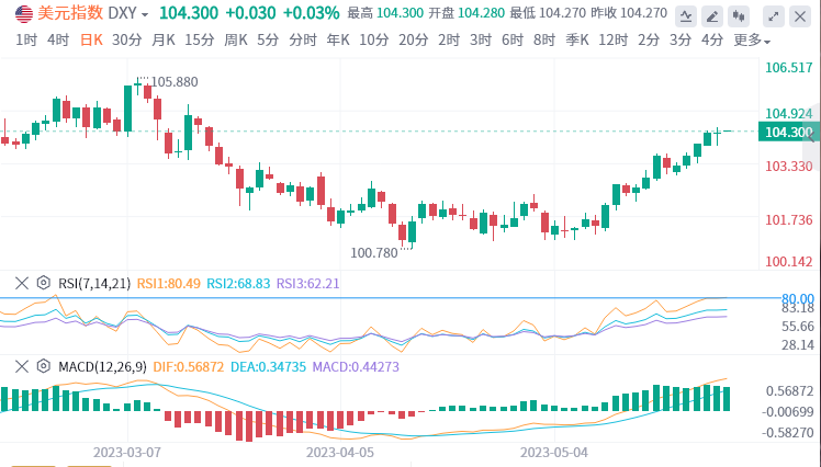 不仅是数据,还有有影响力的人物的评论也支持了对美元的乐观态度。国际货币基金组织总裁克里斯塔利娜·格奥尔基耶娃表示,美国的利率需要更长时间的提高。或者,克利夫兰联邦储备银行行长Loretta Mester表示,周五发布的个人消费支出价格指数突显了通胀进展缓慢。周末,芝加哥联邦储备银行(Federal Reserve Bank of Chicago)行长奥斯坦·古尔斯比(Austan Goolsbee)对美国债务上限的消息表示欢迎,同时在哥伦比亚广播公司(CBS)的《面向全国》(Face the Nation)节目中表示,“我尽量强调,在距离会议还有几周的时候,不要预先判断和做出决定。”