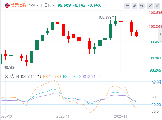 此外,美国劳动力市场进一步疲软的迹象也加剧了DXY的下行空间。自动数据处理(ADP)周二公布,截至11月8日的四周内,私营雇主平均裁员13,500个,而此前的读数为-2500。