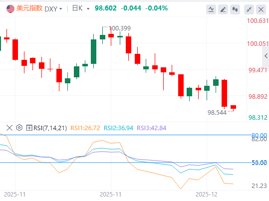 美联储(Fed)宣布连续第三次降息,将主要政策利率降至三年来最低,美元指数周三跌至新的盘中低点。在美联储最新利率决定后,波动性急剧扩大,因为美元市场难以消化美联储的最新走势。