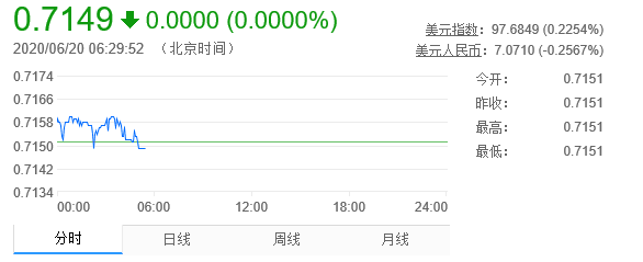 转换数据仅供参考,交易时以银行柜台成交价为准 更新时间:2020-06-21 15:15